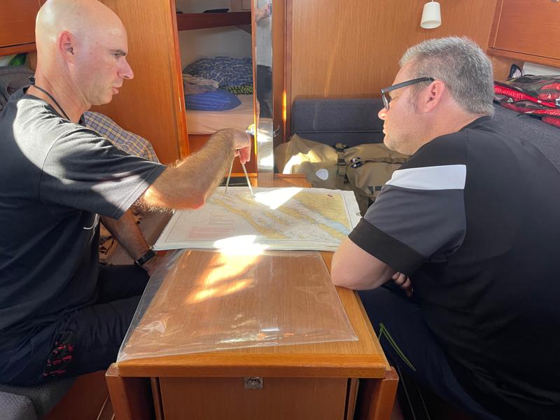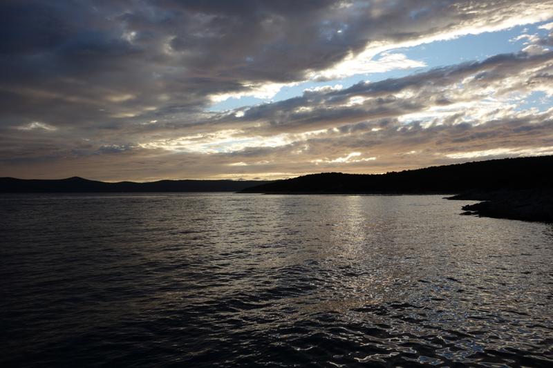 Unter Deck war es nun sehr ungemütlich, so dass ich auf das Führen des Logbuchs für die nächsten 3 Stunden verzichten musste, seekrank ist zum Glück niemand geworden, ich muss aber zugeben, bei mir hätte nicht viel gefehlt und der Rest der Crew sah auch nicht ganz frisch aus. Am Nachmittag liefen wir die geschützte Bucht von Veli Rat an und warfen den Anker. Hier war es deutlich ruhiger, so dass wir auch hier schwimmen konnten und in Ruhe unser Abendessen in Form von Hähnchenbrust mit Lauch und Reis genießen konnten. Am Abend zeigte sich am Himmel schon intensives Wetterleuchten und kündigte das bevorstehende Gewitter an. Wir haben zur Sicherheit noch 5 m mehr Ankerkette gegeben und uns nach Wein, Bier, Slivovice und Käse um 23:30 zur Ruhe begeben